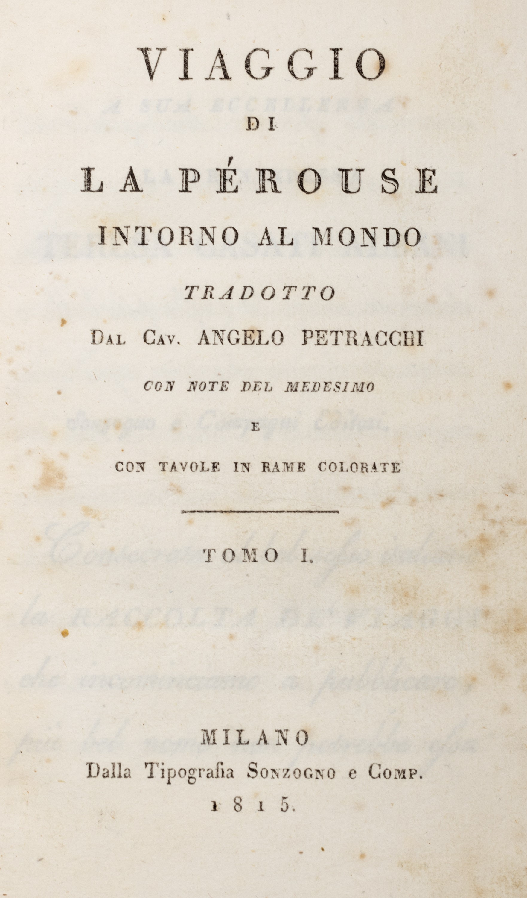 Milano, Sonzogno e Comp., 1815. In 8°. 4 parti in 2 voll. Con 16 tavole numerate e 1 carta geografica ripiegata, lievi fioriture, rare piccole macchie, strappo senza perdita alla tavola ripiegata, legatura coeva in mezza pelle, autore e titolo entro tassello al dorso, difetti.