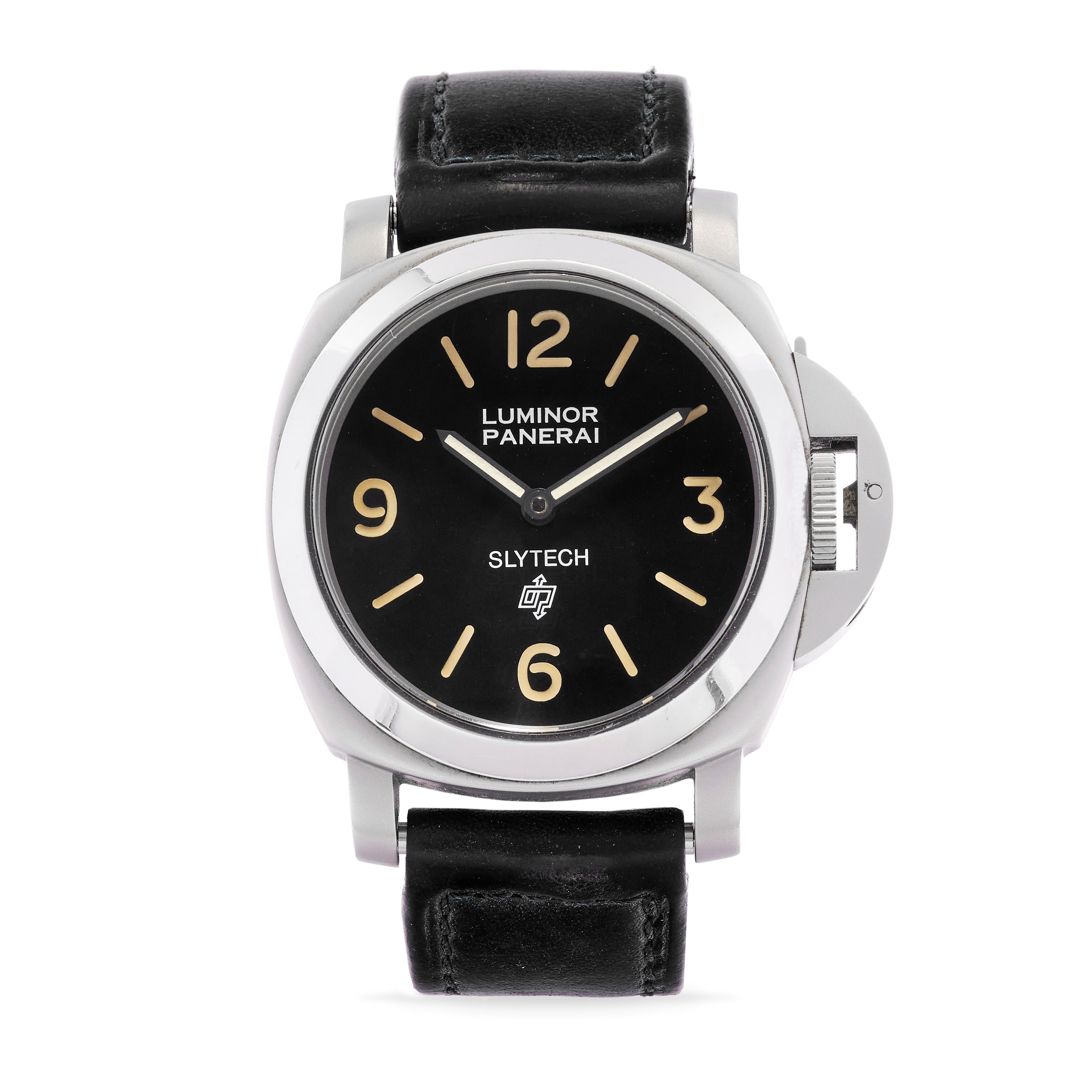 Quadrante nero, scritta Slytech e logo Pre-Vendôme, indici e numeri arabi luminescenti.