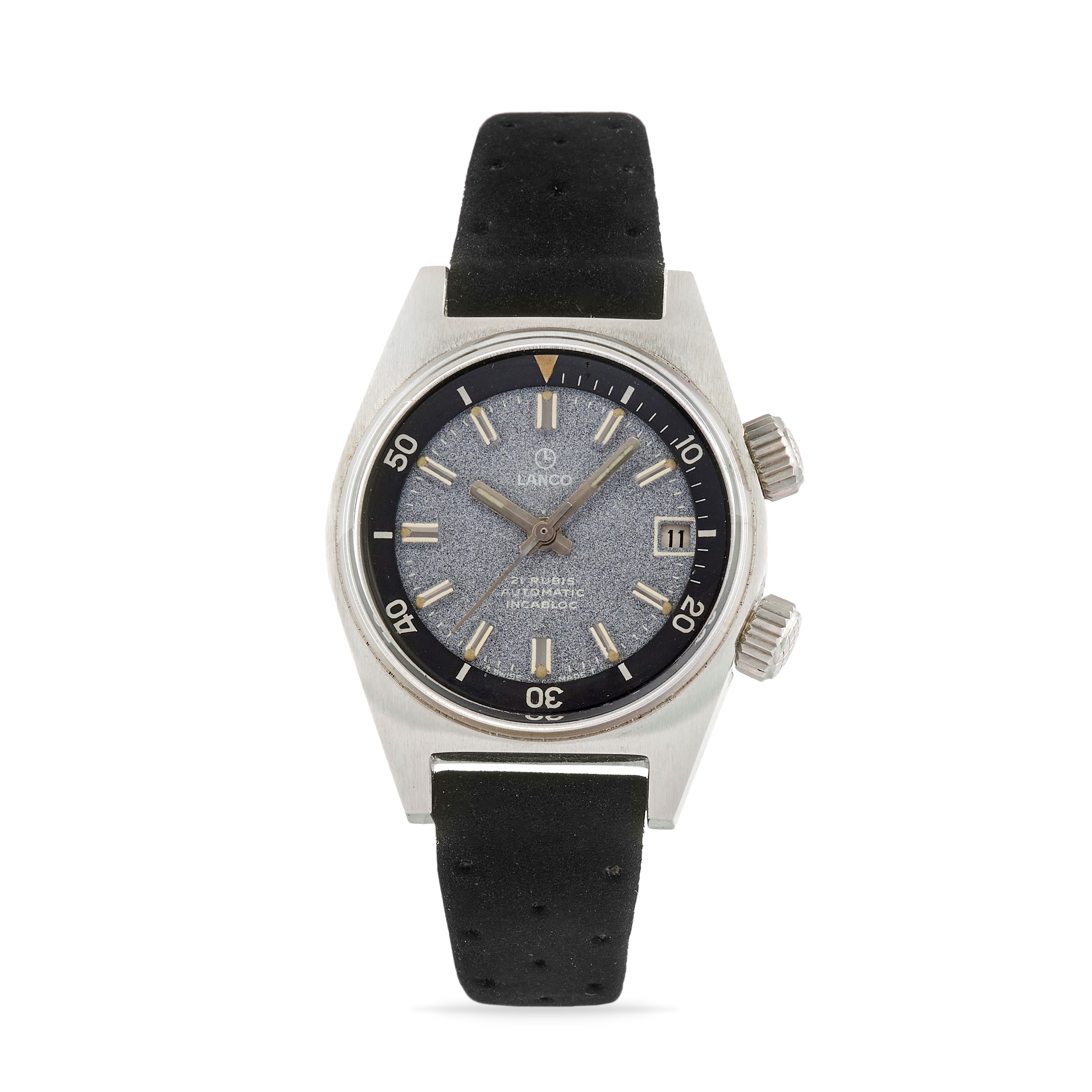 Quadrante grigio con finitura grené, indici applicati e luminescenti, rehaut girevole nero.