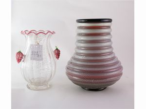 h da cm 22 a cm 25,5 XX secolo con inclusioni in argento, uno con grappoli d'uva applicati a caldo e l'altro [..]