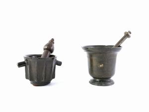 h cm 13, diam cm 14, h cm 9, diam cm 11,5 XVII secolo uno liscio ed uno più piccolo a costolature, alcuni dif [..]