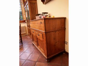 h cm 104x125x63 fine del XIX secolo piano da alzarsi a celare vano per le farine, due cassetti con sportelli [..]
