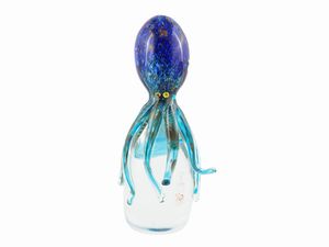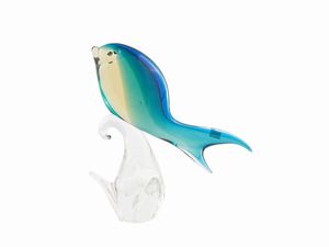 H cm. 32 Murano, seconda metà del XX secolo sui toni cangianti dall'azzurro al verde, poggiante su base trasparente [..]