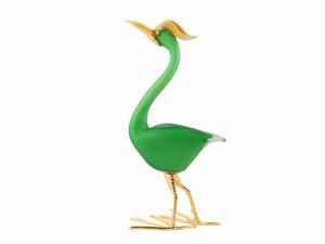 H cm. 41 Murano, seconda metà del XX secolo con applicazioni in pasta di vetro gialla e zampe in metallo dorato. [..]