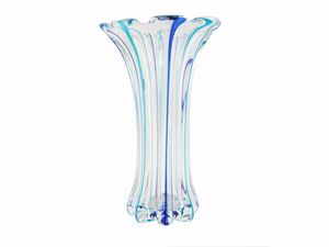H cm. 40 Murano, seconda metà del XX secolo con righe verticali celesti e blu. Produzione Antica Murrina.