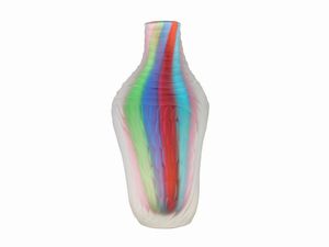 H cm. 35 Murano, seconda metà del XX secolo con decoro a strisce policrome, superficie interamente scalpellata. [..]