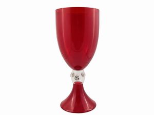 H cm. 48 Murano, seconda metà del XX secolo con nodo di congiunzione tra base e corpo, cordoli laterali con inclusioni [..]