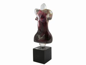 H cm. 39 Murano, seconda metà del XX secolo poggiante su cubo in vetro nero. Attribuzione vetreria Formia.