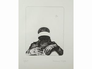 foglio cm 69x70 litografia, es 17/75, firmata, in cornice