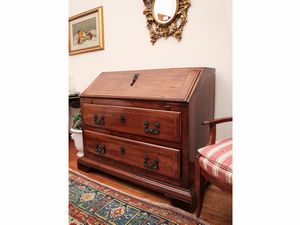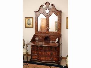 h cm 240x116x60 seconda metà del XVIII secolo intarsiato con filettature nella stessa essenza, sportello a calatoio [..]