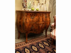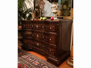 h cm 92x160x67 Lombardia, metà del XVIII secolo intarsiato con filettatura in legni di frutto, due cassetti sul [..]