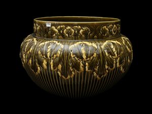 h cm 40, diam cm 38 inizio del XX secolo decorato con motivi di grandi foglie nei toni del verde e del giallo