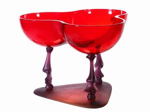 h cm 21 x d cm 29,5 Francia, 1988 in cristallo rosso rubino su treppiedi in forma di profilo di donna e base [..]