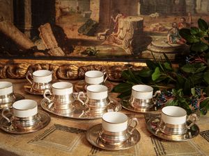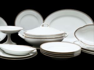 Anni Trenta bordo decorato con piccoli motivi geometrici policromi, completo per 12 persone, composto da 36 piatti [..]