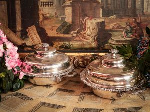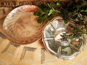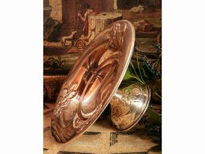 h cm 15x26 inizio del XX secolo di forma circolare, bordi sbalzati con motivi floreali, lievi difetti