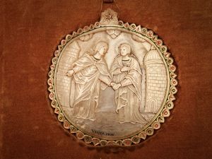 cm 15x14 XIX secolo intagliata con motivo devozionale raffigurante la Visita di Santa Elisabetta alla Vergine, [..]