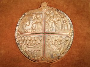 cm 16,5x14,5 XIX secolo intagliata con motivo devozionale raffigurante quattro episodi della vita di Gesù, su [..]