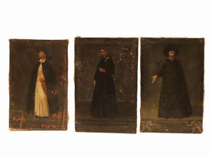 cm 30x20 XVII/XVIII secolo serie di sei dipinti ad olio su tela, difetti