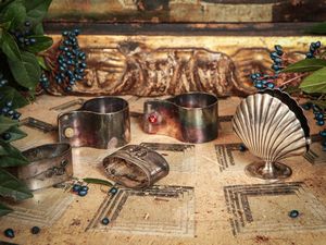 gr complessivi 180, h da cm 4 a cm 6 (8) XIX/XX secolo composto da una coppia di portauovo cesellati con motivi [..]