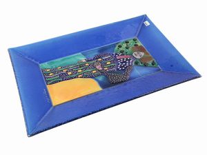 Larg cm 47x30 Murano, seconda metà del XX secolo con figura femminile policroma all'interno. Reca iscrizione [..]