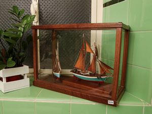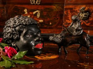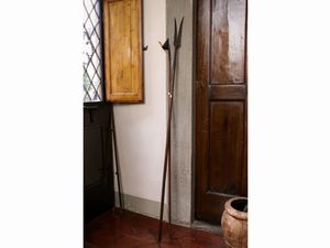 teca h cm 59x31x18 (9) XVIII/XIX secolo tra cui una teca in legno laccato verde realizzata come un piccolo armadio, [..]