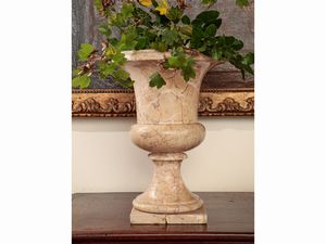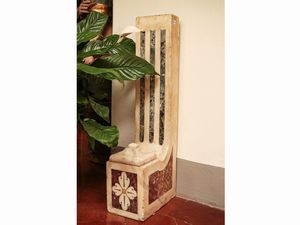 h cm 132, diam cm 50 fine del XIX/inizio del XX secolo piano sagomato aggettante con gocciolatoio, tre lesene [..]
