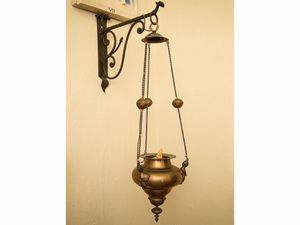 h cm 80 (4) sorrette da tre catene con attacco antropomorfo, corredate da braccio in ferro battuto