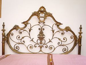h cm 138x47x24 XVIII secolo due grandi anse a voluta, sormontati da palme lanceolate in tôle sbalzata a bassorilievo [..]