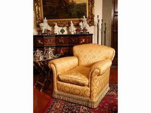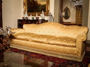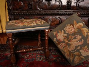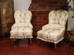 h cm 86x56x70 rivestite con tessuto color crema ricamato con motivi floreali, dettagli in passamaneria, piedini [..]