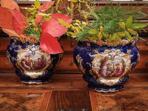 h cm 20, diam cm 22 inizio del XX secolo decorati con scene classiche su fondo blu