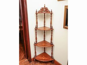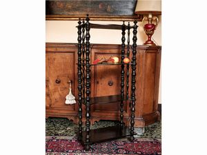 h cm 125x54,5x27,5 inizio del XX secolo quattro ripiani a giorno su sostegni torniti, lievi difetti