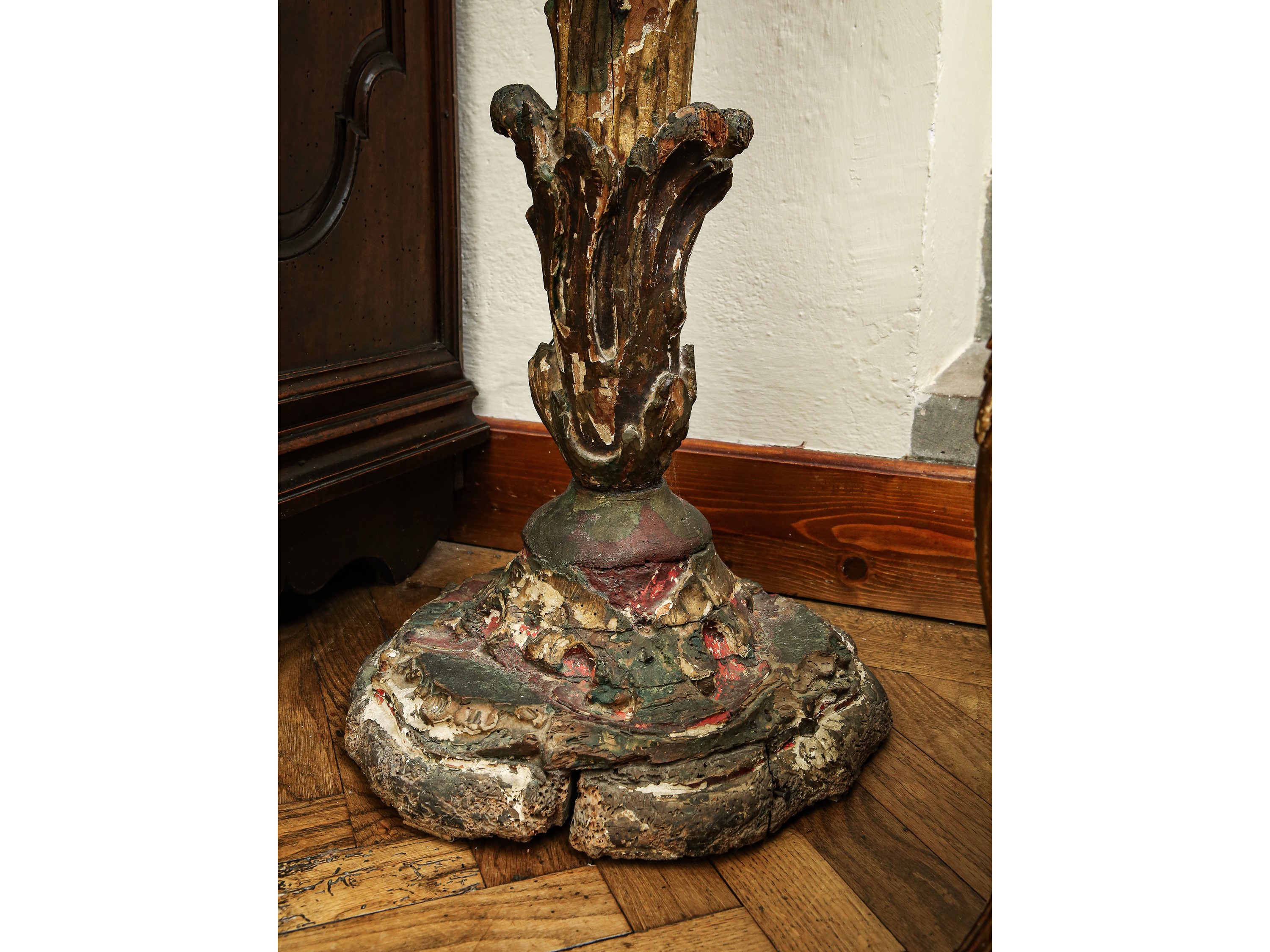 XVII/XVIII secolo realizzata come una colonna tortile decorata da motivi vegetali e grappoli d'uva, mancanze e difetti