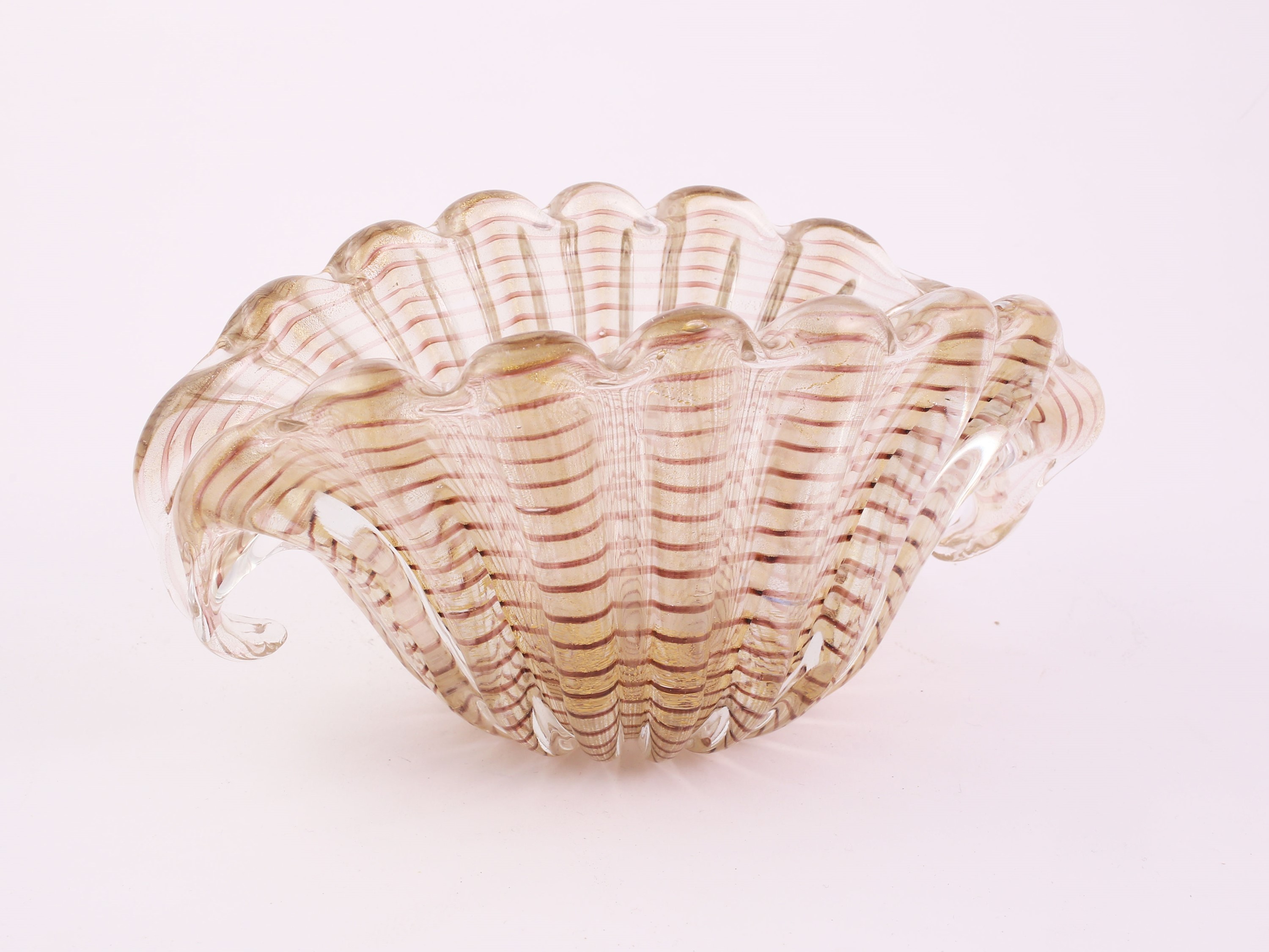 Murano, 1950 circa con strisce orizzontali amaranto, attribuzione Barovier