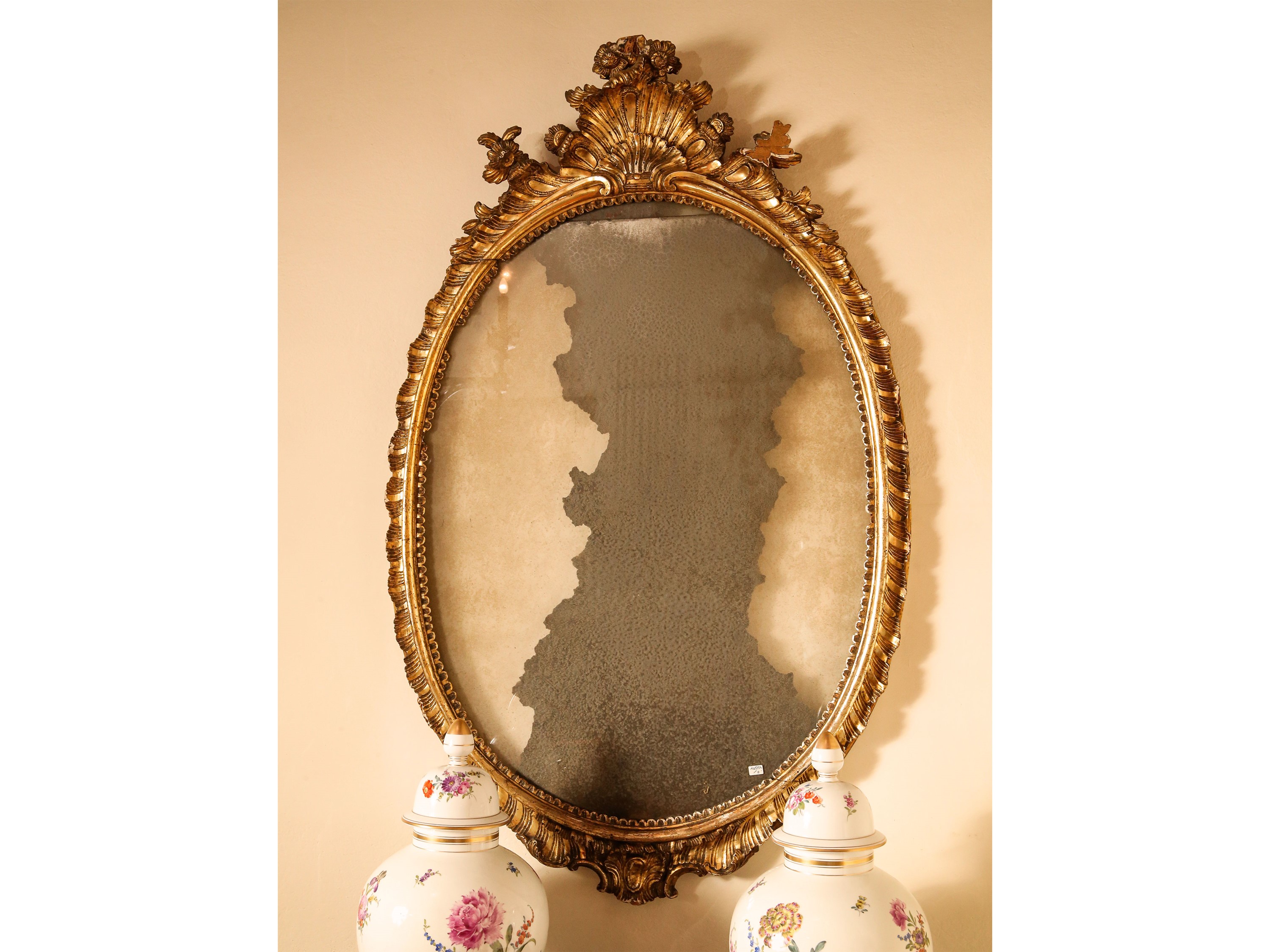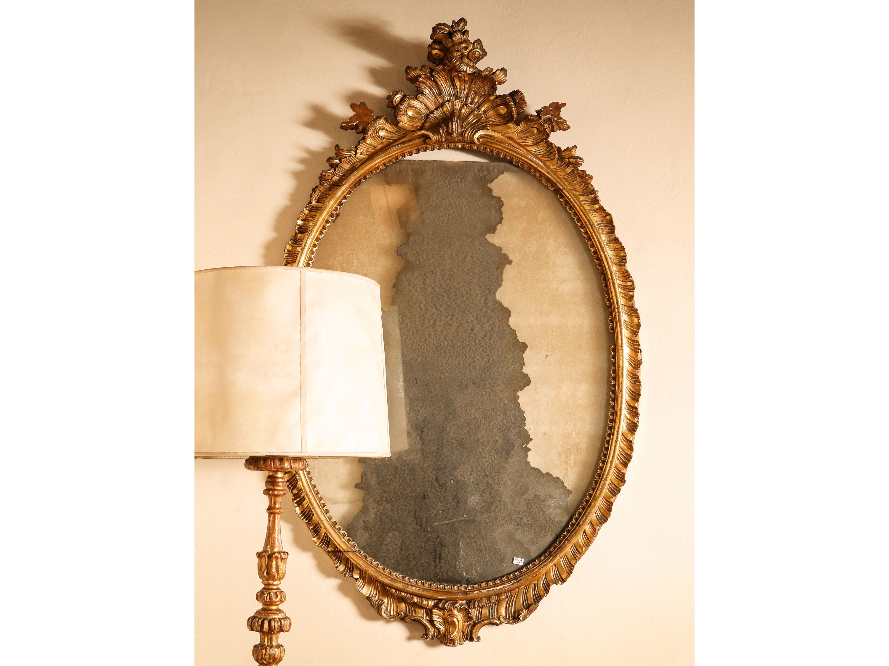 fine del XIX secolo cimasa centrata da motivo a conchiglia, montate con specchi coevi (difetti e mancanze)