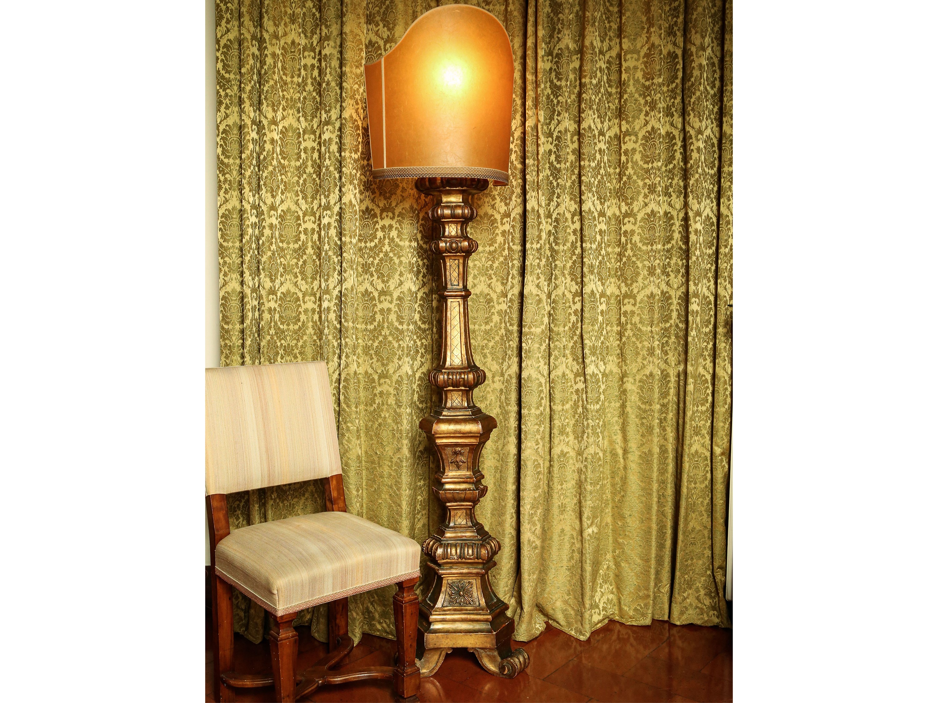 Coppia di grandi torciere da terra in legno intagliato e dorato