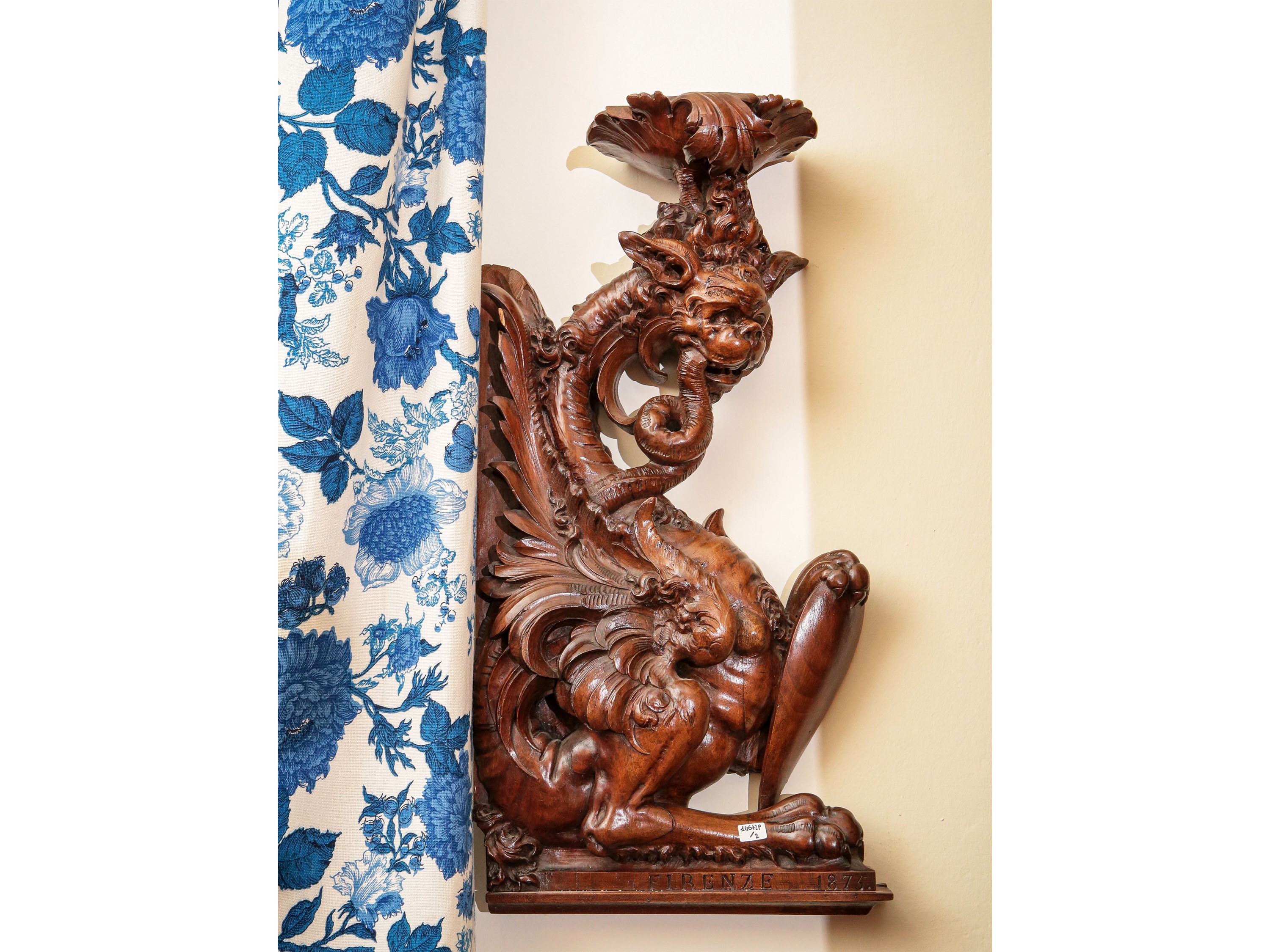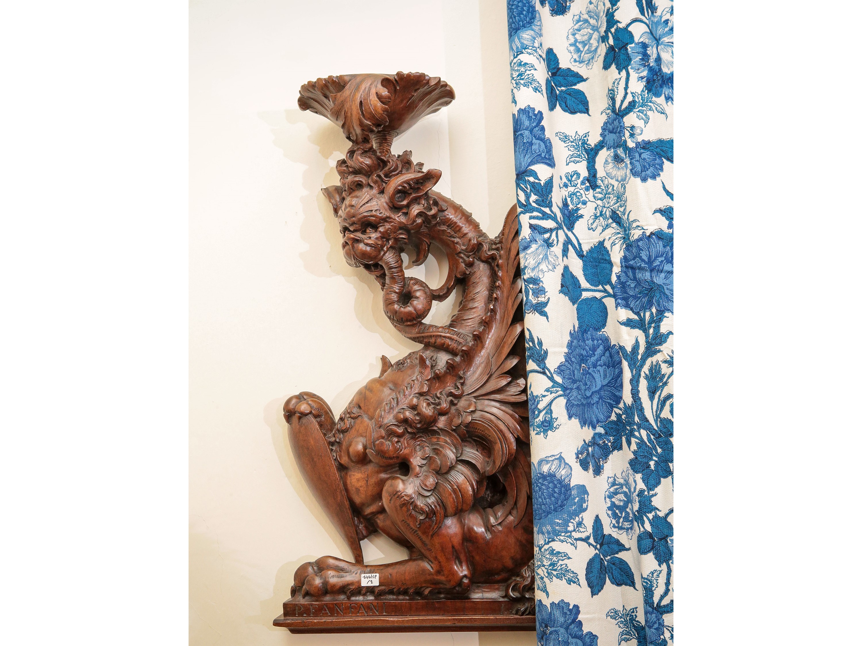 Firenze, fine del XIX secolo realizzato come una voluta scolpita con drago che sorregge uno scudo, firmati P. Fanfani Firenze 1895