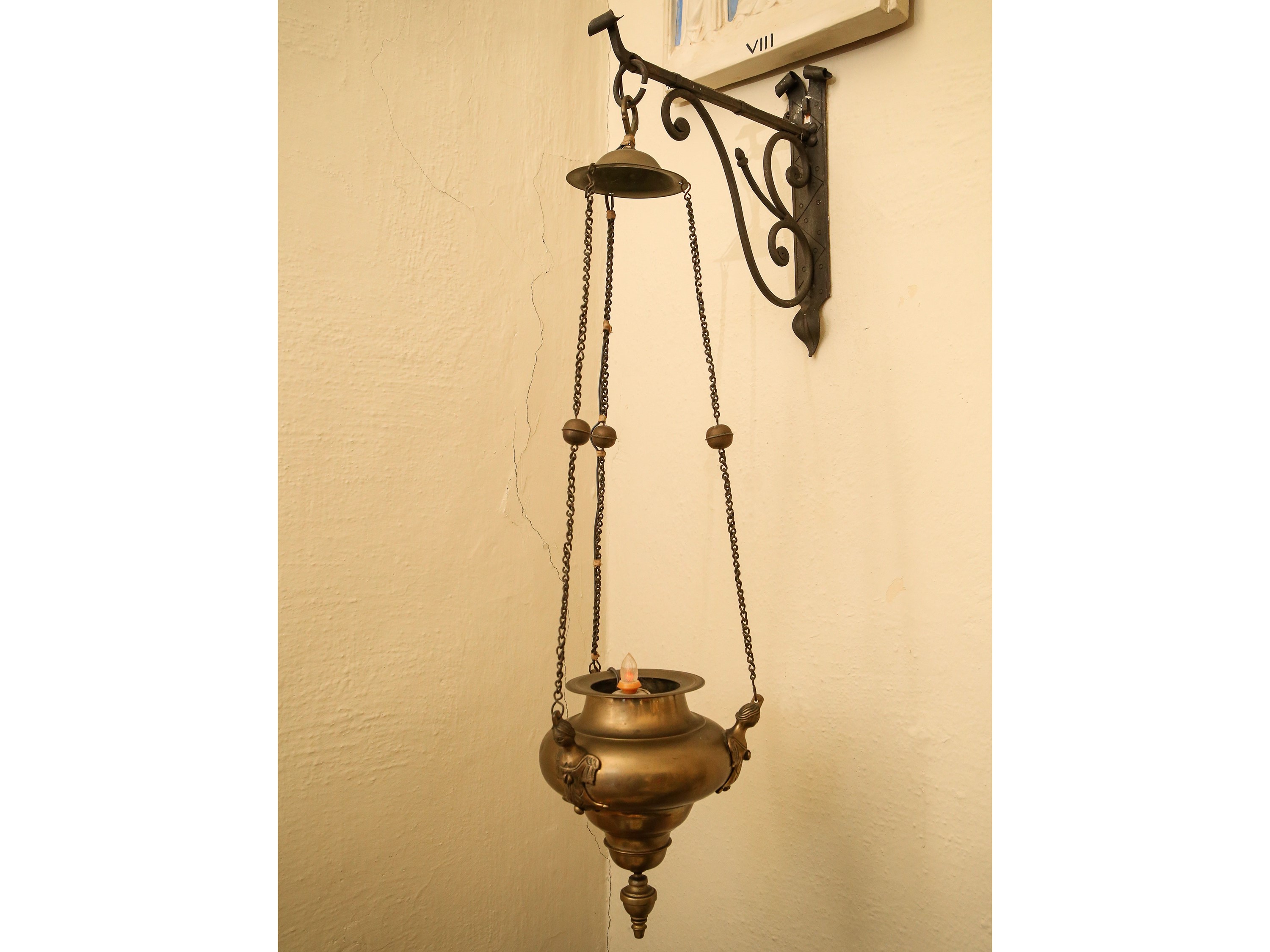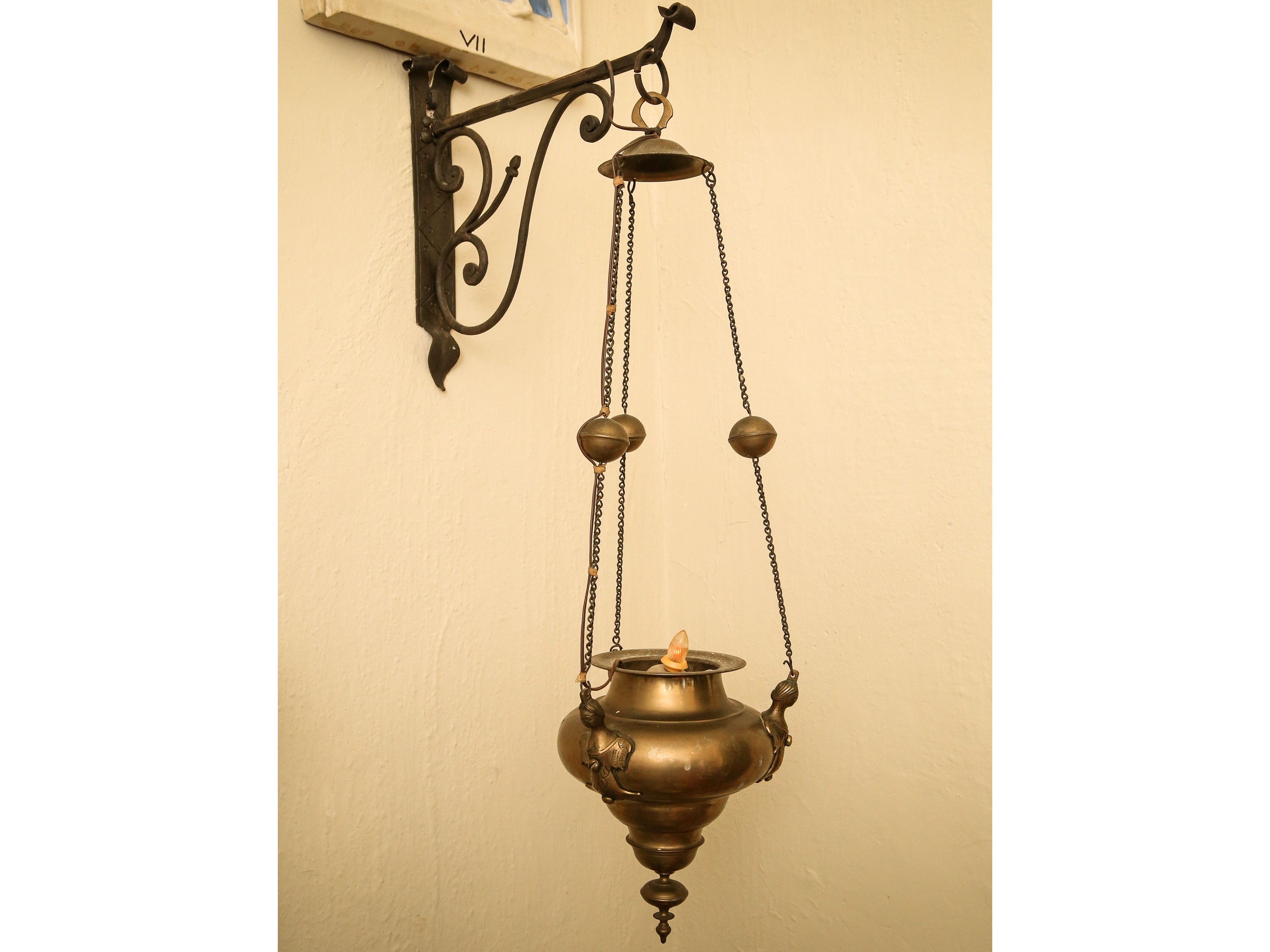 sorrette da tre catene con attacco antropomorfo, corredate da braccio in ferro battuto