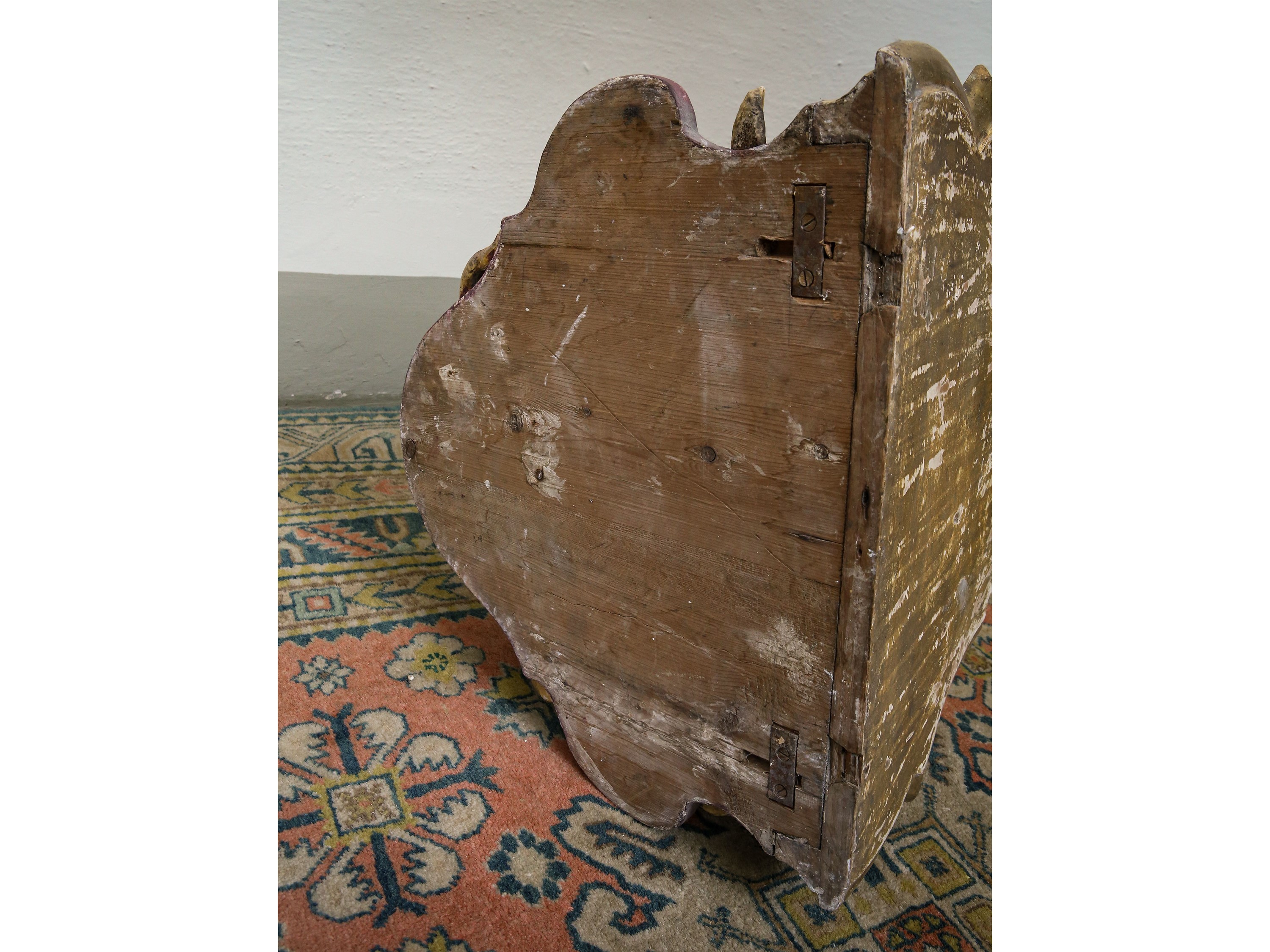 metà del XIX secolo piano sagomato sorretto da cherubino tra trionfo di fiori, difetti e mancanze