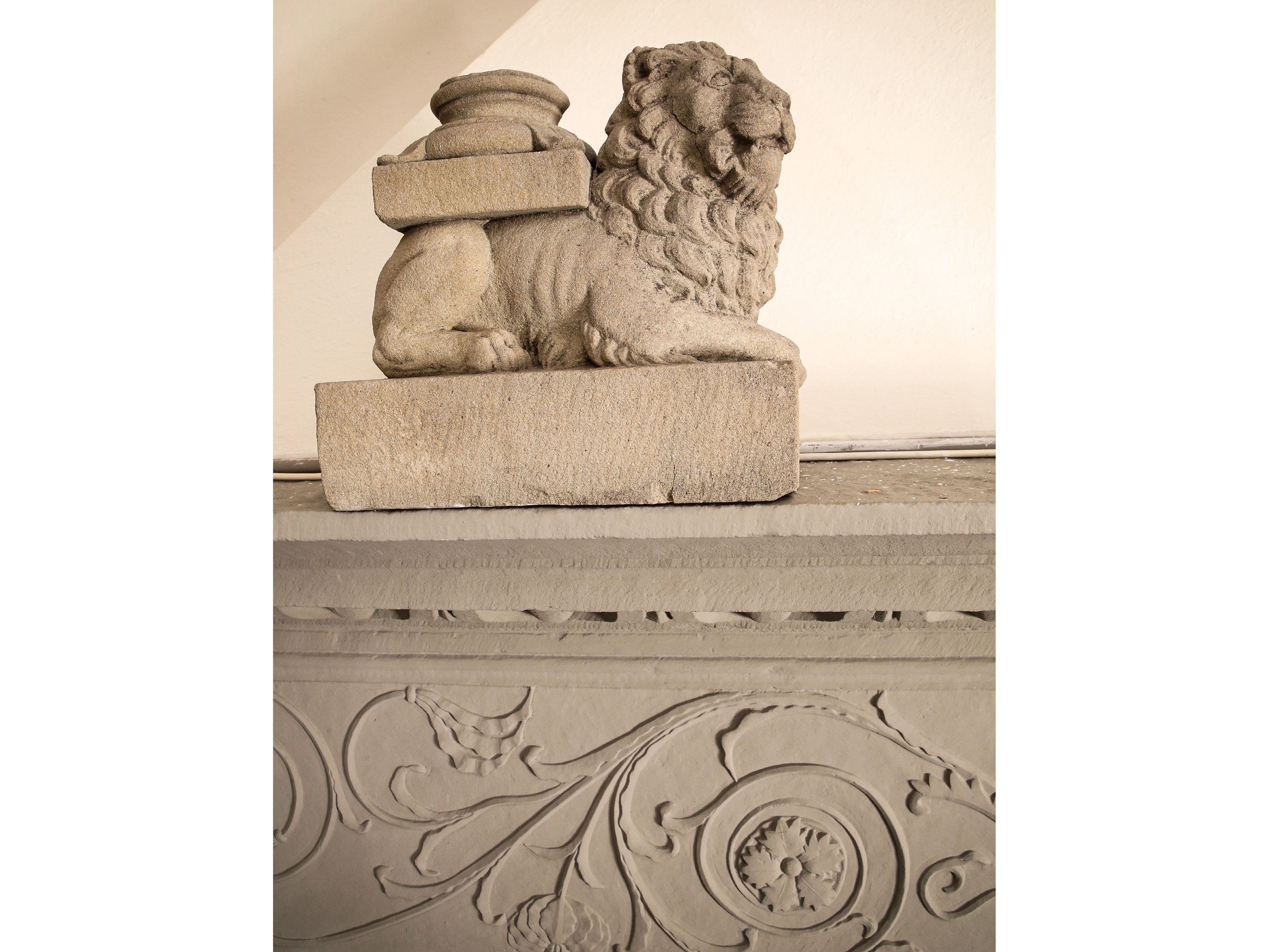 XVII secolo raffiguranti dei leoni accucciati che sorreggono un capitello, alcuni difetti