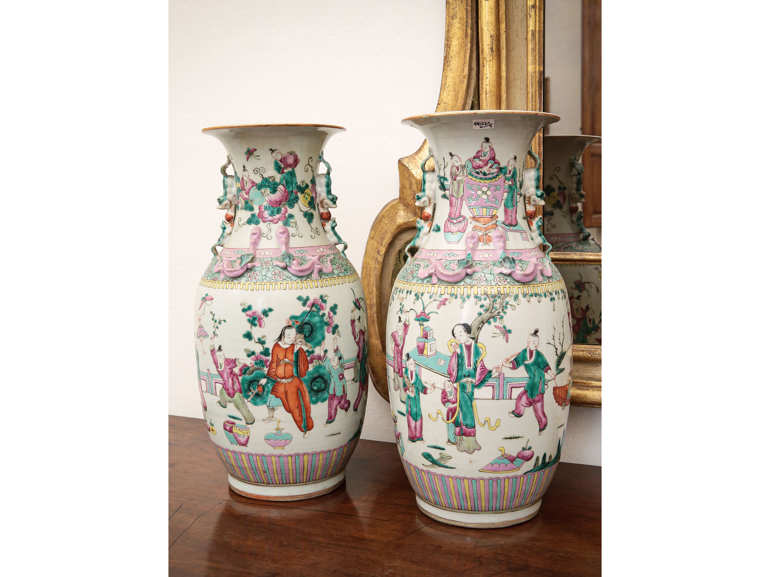 Cina, fine del XIX/inizio del XX secolo dipinti con scene di genere nei toni del rosa e del verde
