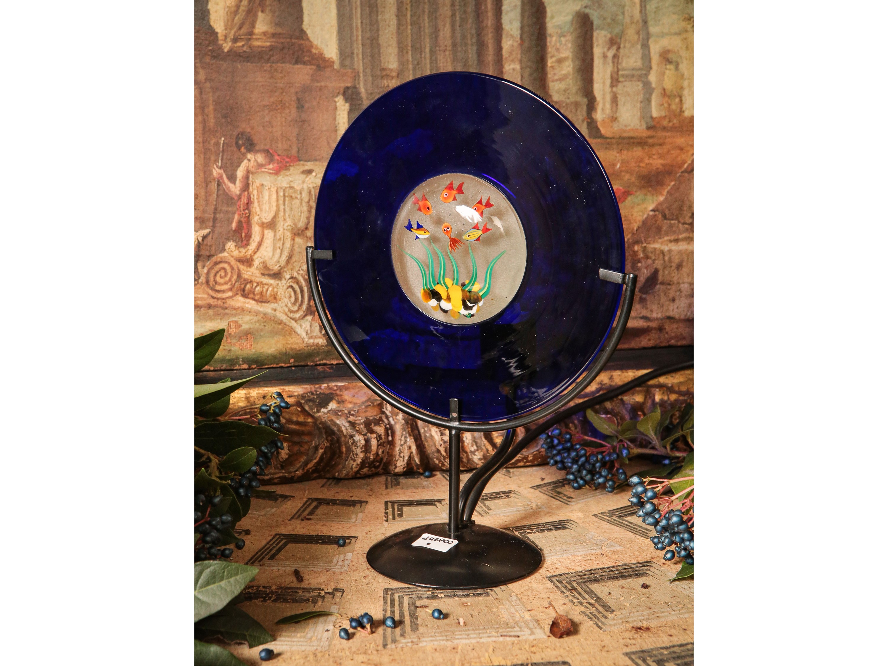 Murano, seconda metà del XX secolo composto da pesci e alghe multicolori, poggiante su base in metallo retroilluminata.