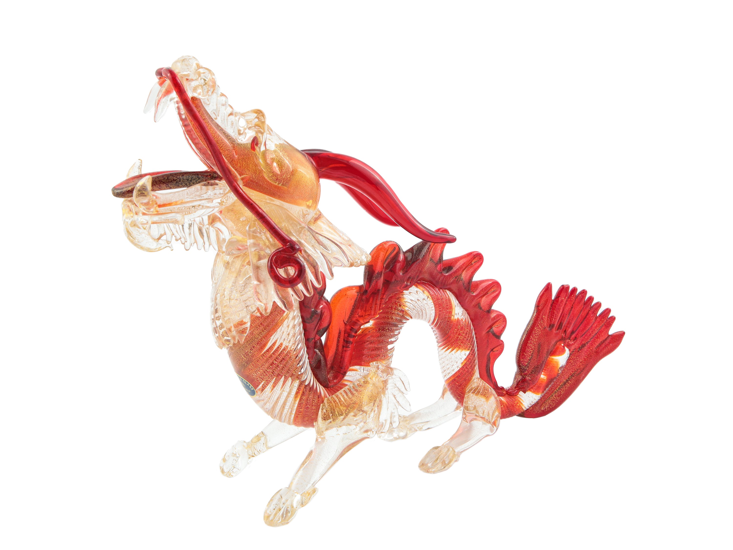 Murano, seconda metà del XX secolo con inclusioni di avventurina e applicazioni a caldo color rosso rubino.