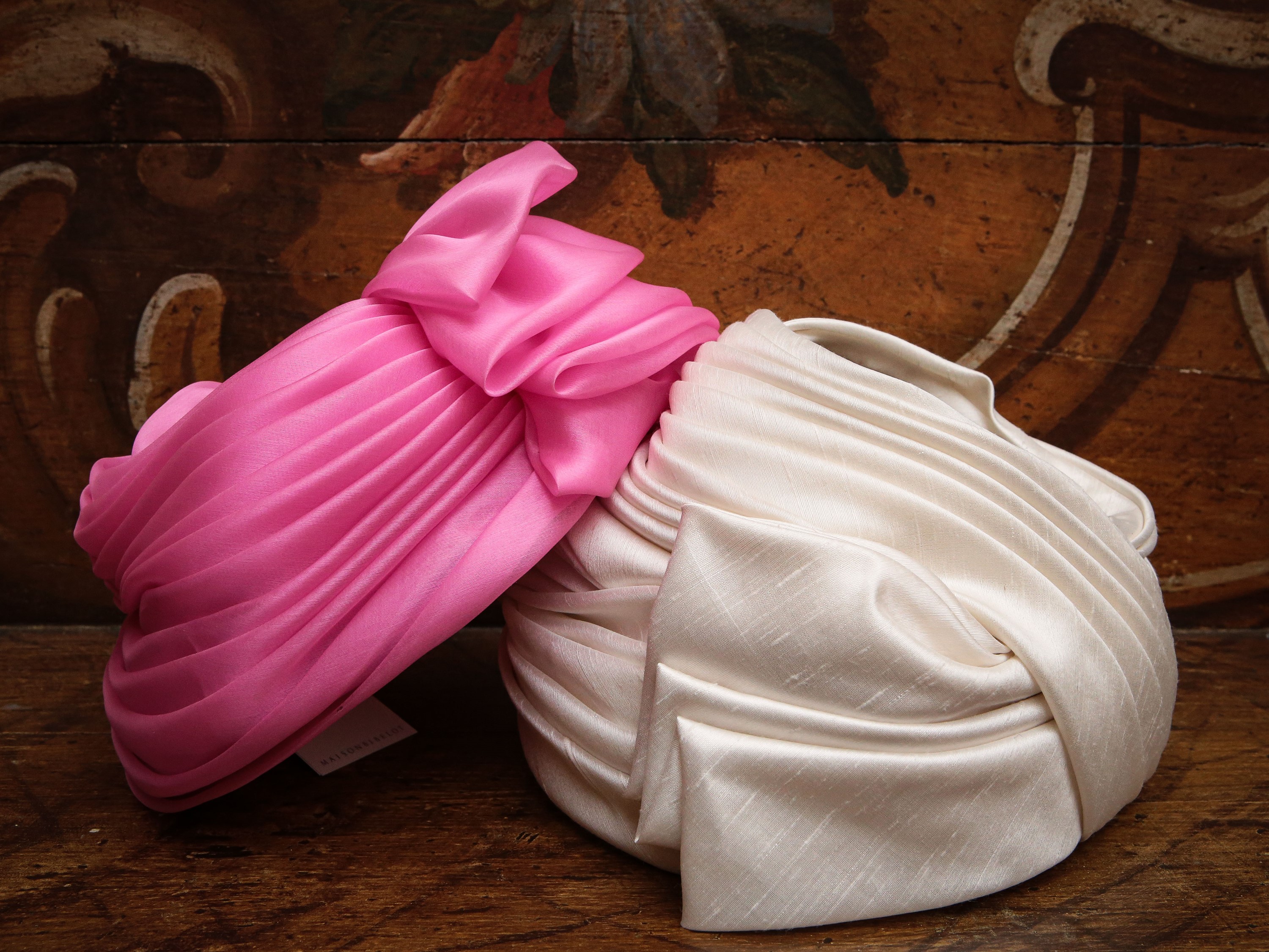 Primi Anni Sessanta in seta, uno in shantung bianco, realizzato con tessuto a pieghe, e l'altro in organza fucsia, lievi difetti