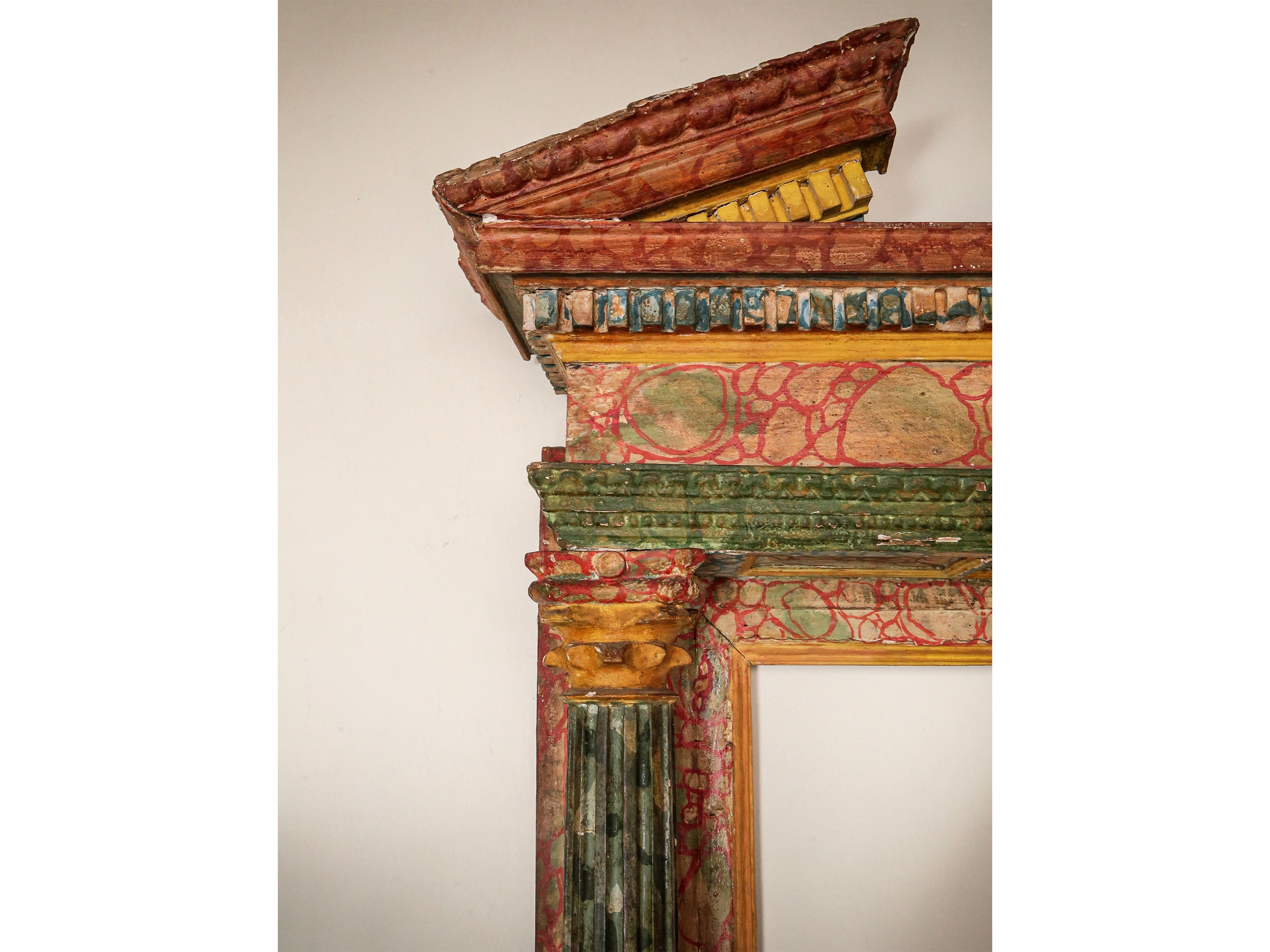 XVIII secolo dipinta ad imitazione di diverse tipologie di marmi nei toni del rosso, verde e dell'ocra, alcuni difetti
