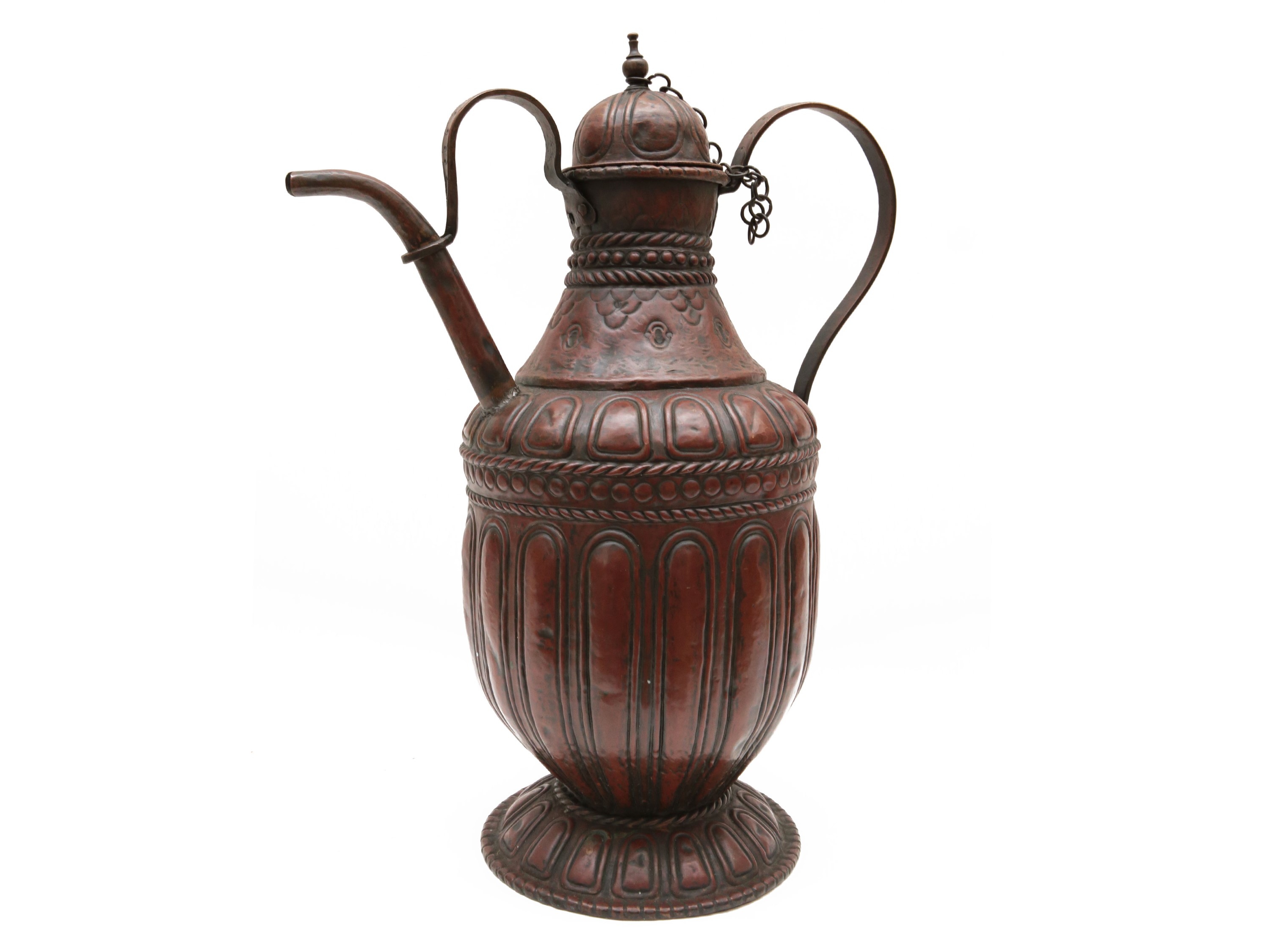 XIX secolo sbalzato con baccellature, coperchio a cupola con catenella, ansa e beccuccio sinuosi