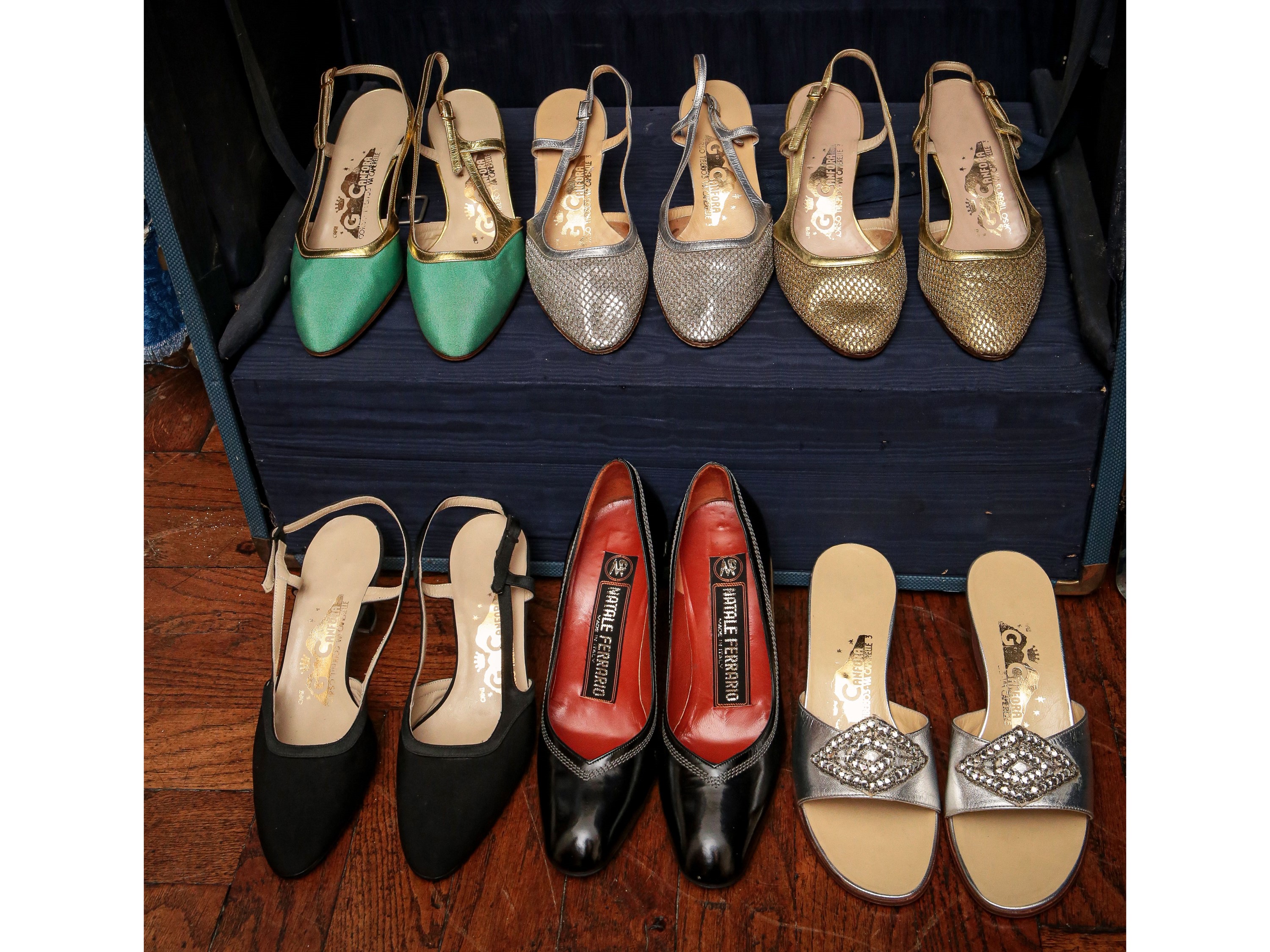 Anni Cinquanta tra cui cinque paia firmate Canfora, ed un paio in vernice nera con fiocco, Charles Jourdan Paris, difetti