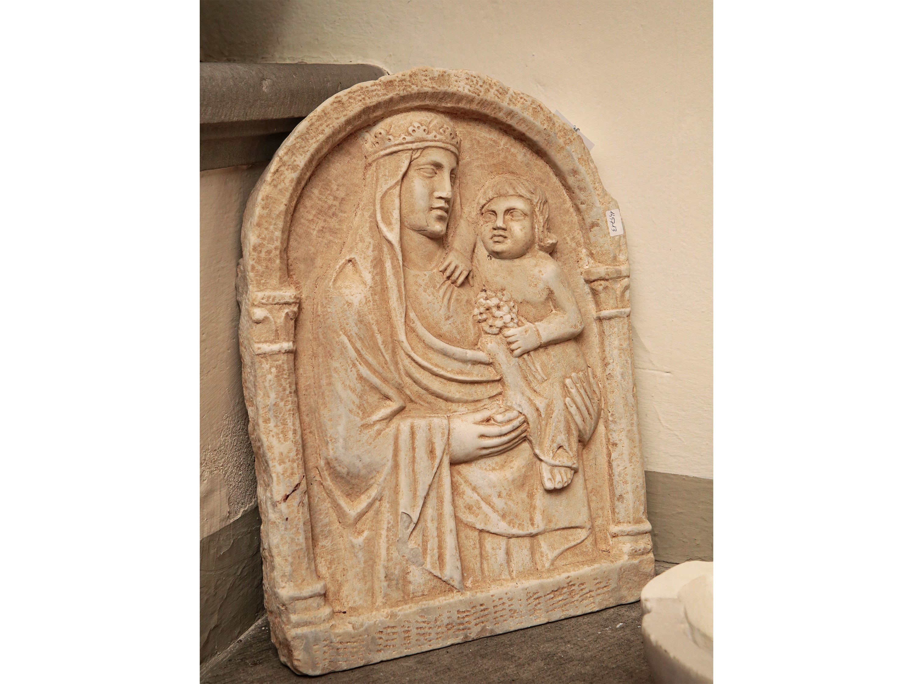 Scuola campana del XIV secolo bassorilievo in pietra di forma centinata