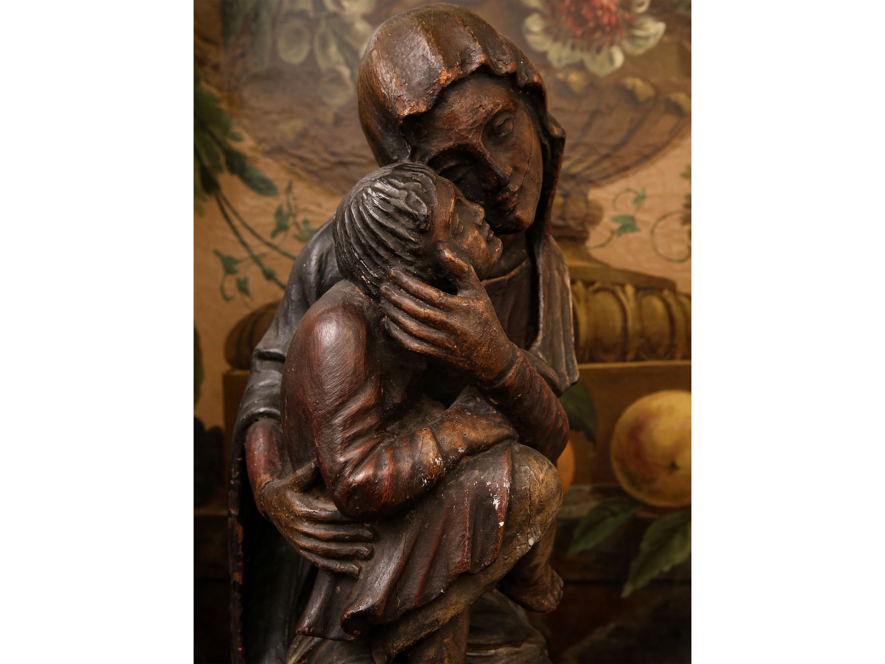 fine del XIX secolo scultura in legno policromo di gusto gotico