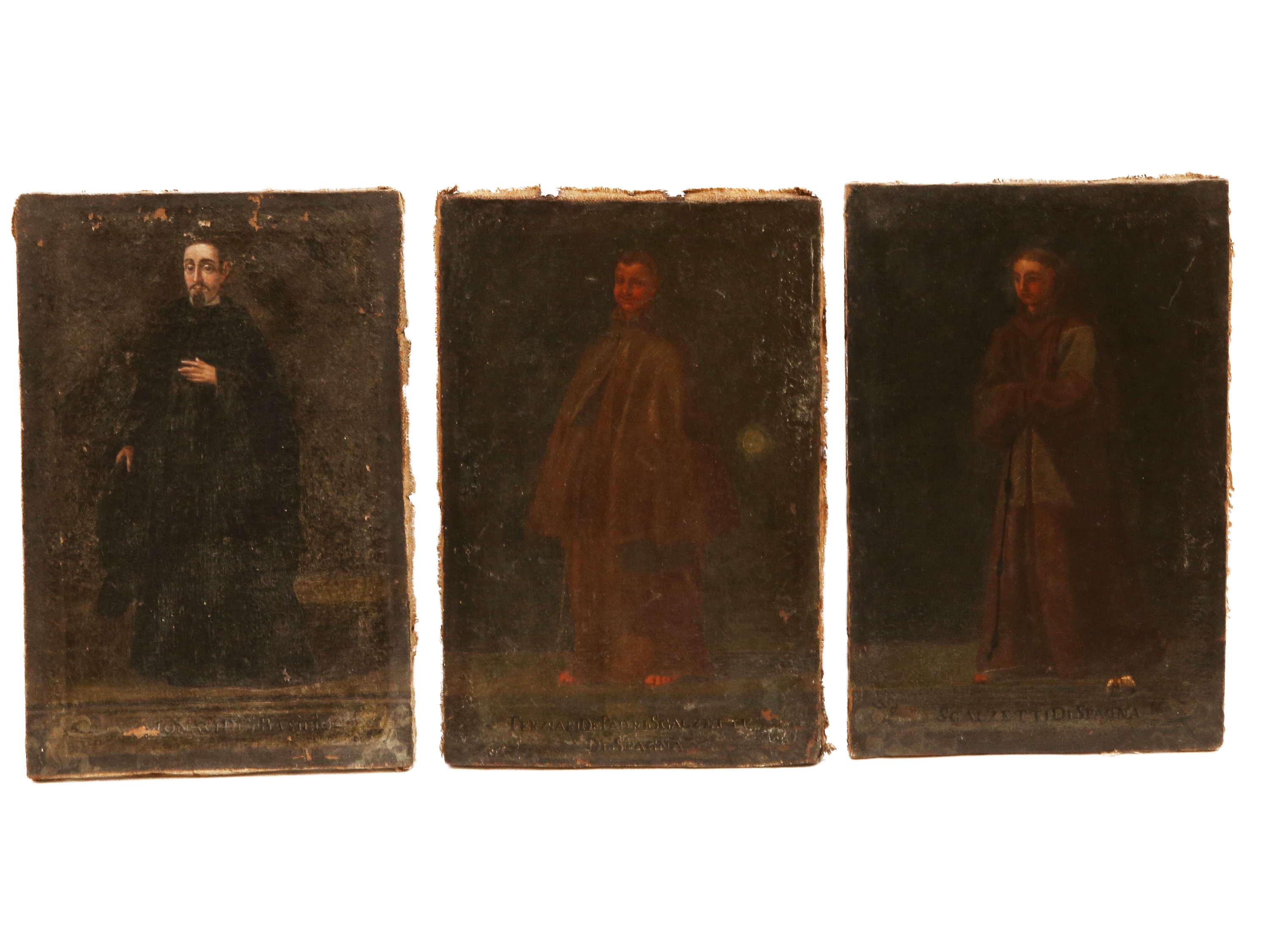 XVII/XVIII secolo serie di sei dipinti ad olio su tela, difetti