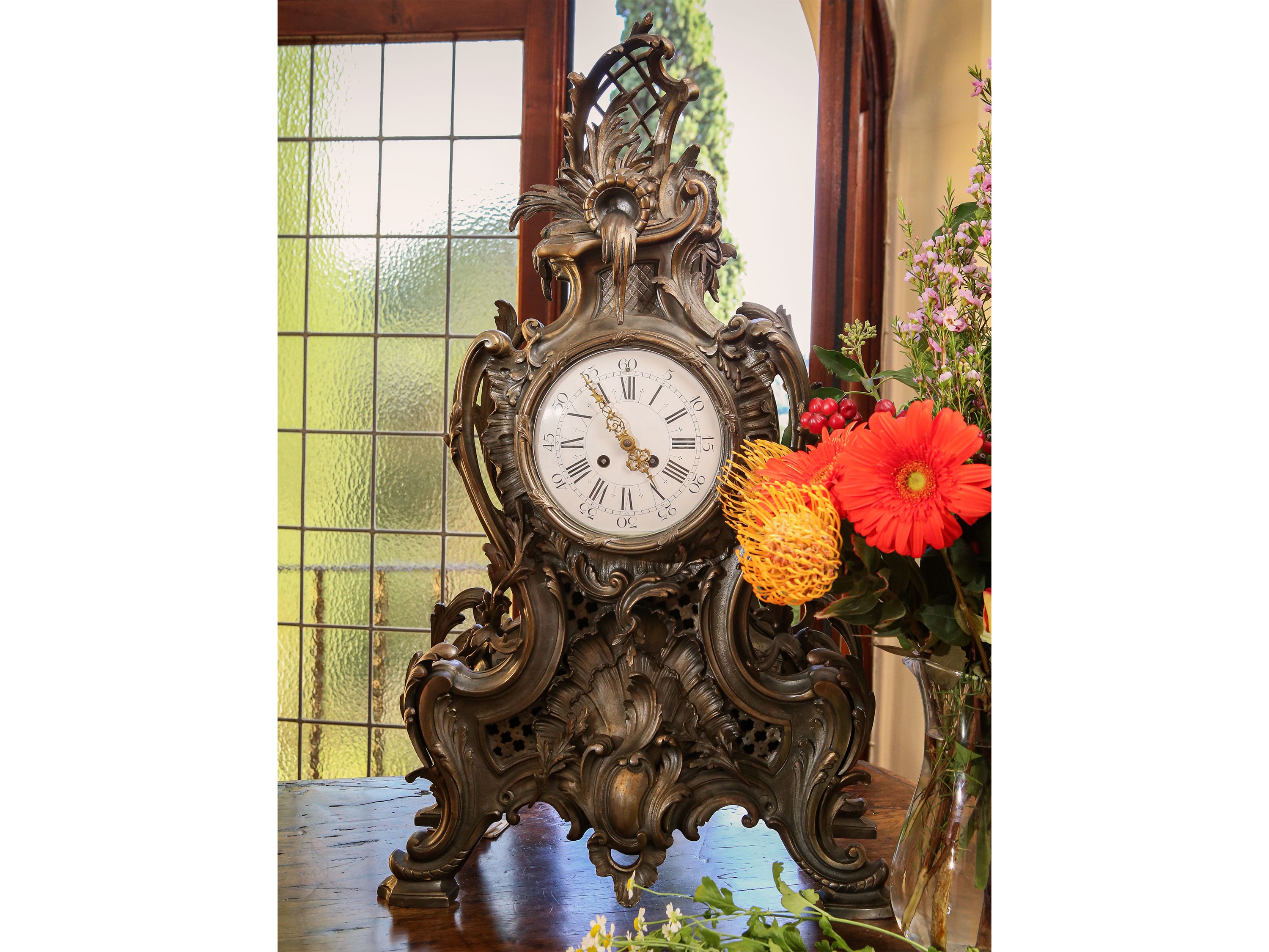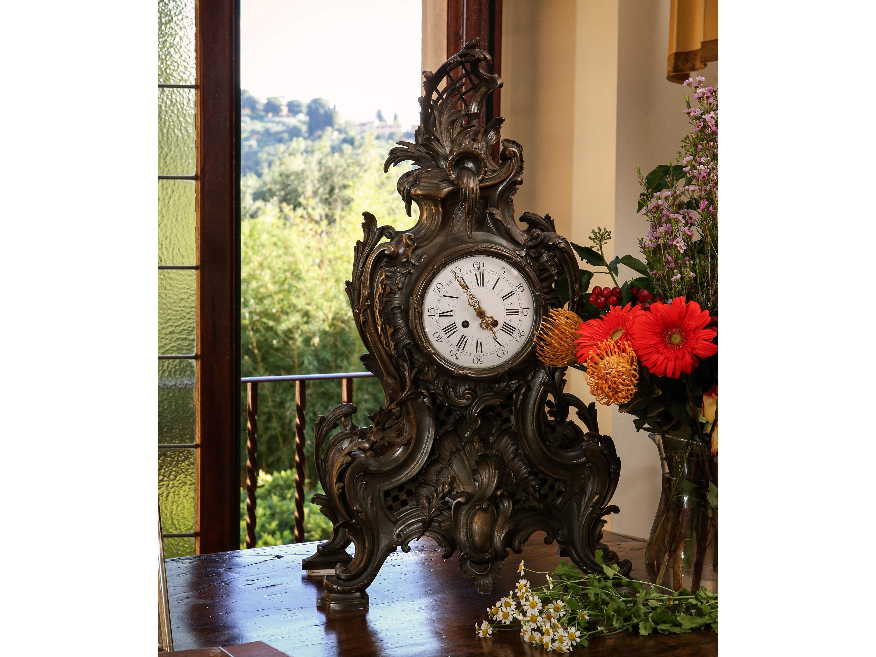 Francia, fine del XIX/inizio del XX secolo realizzato in stile rococò, quadrante in smalto con numeri romani ed arabi, lancette cesellate in bronzo dorato